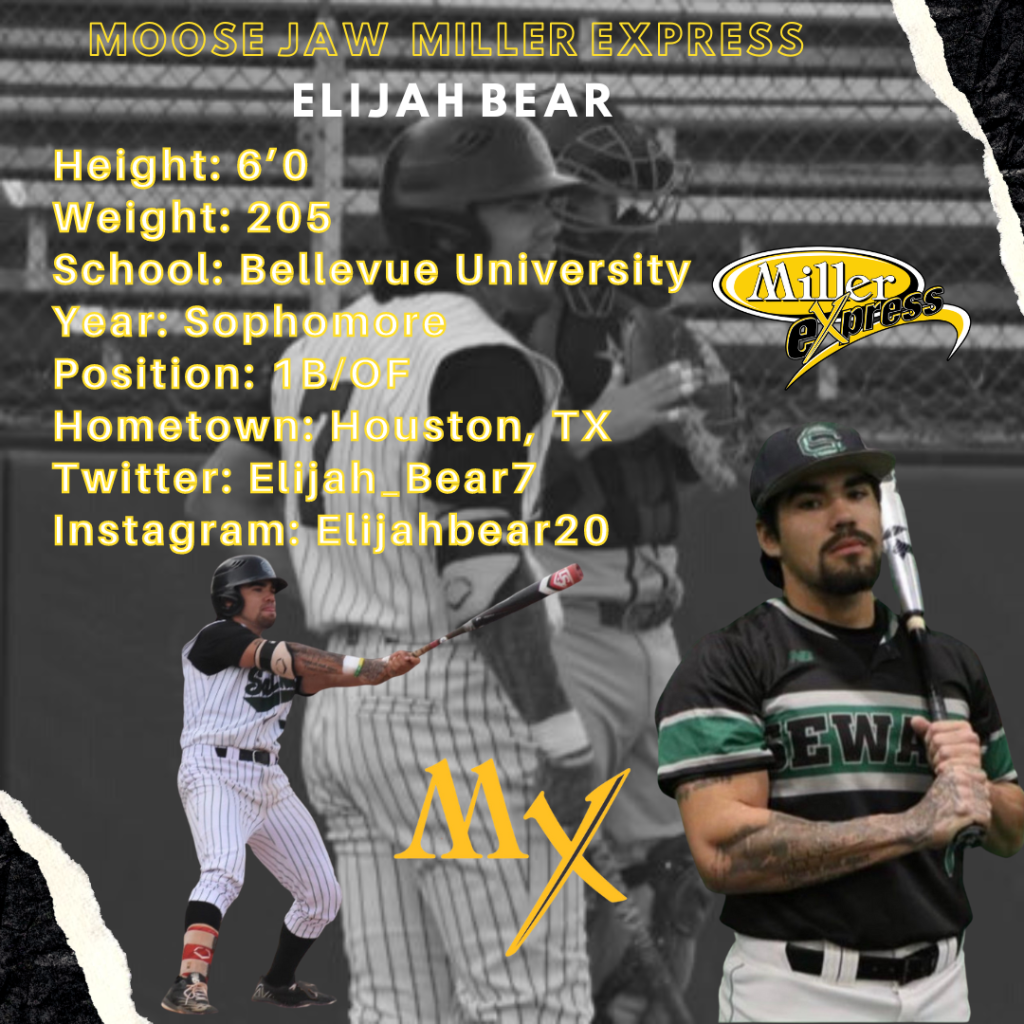 We have signed 1B/OF Elijah Bear for the 2024 season. Elijah is from Houston, Texas & joins us from Bellevue University. He is coming off a college season in which he hit .387, including 20 home runs & 80 RBI. Welcome to Moose Jaw, Mr. Bear!