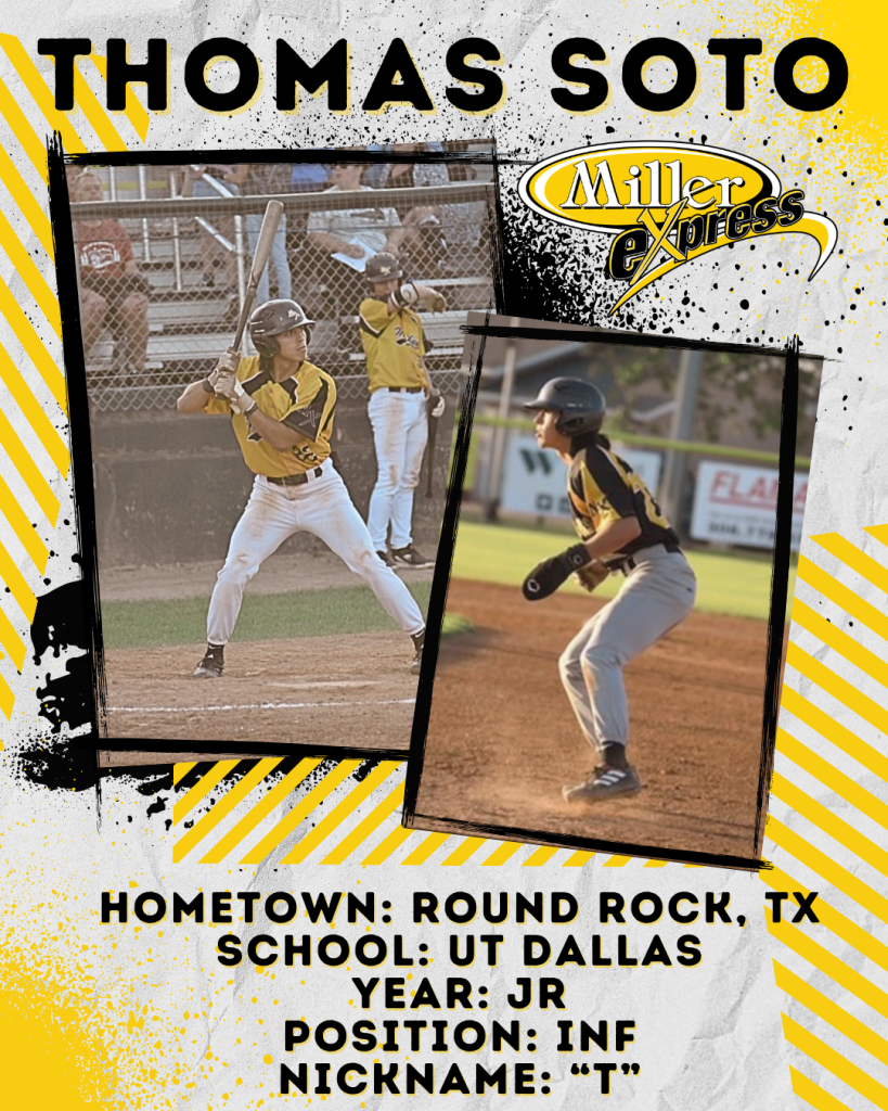 RETURNINGWe are proud to announce the return of INF Thomas Soto for a THIRD season in 2025. Thomas is from Round Rock, Texas and joins us from UT Dallas. Welcome back, T!
