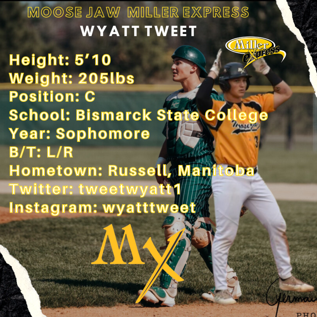 RETURNING PLAYERWe have re-signed Bismarck State College sophomore Wyatt Tweet for the 2024 season. Wyatt was a WCBL all-star in 2023 for the Millers and hails from Russell, Manitoba. Welcome back Tweeter!