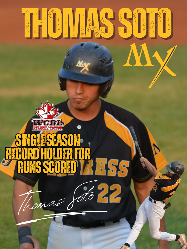 The Moose Jaw Miller Express are proud to celebrate another historic moment in franchise history — Thomas Soto has officially set the WCBL single-season record for runs scored.